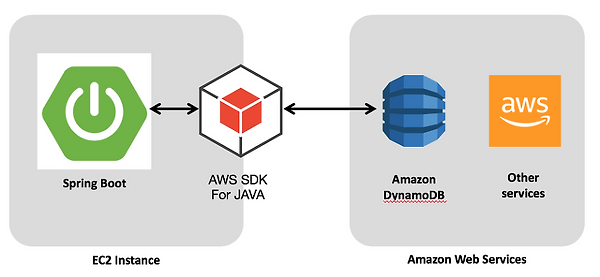 OverviewAWS SDK for Java는 Amazon Web Service를 위한 JAVA APi이다. 즉, Amazon S3, Amazon DyanmoDB의 서비스를 사용하는 Java application을 만들 때 사용하게 된다. 이번 포스팅의 목표는 EC2 Instance에서 실행하는 Spring Boot project가 DyanmoDB service를 사용할 수 있도록 AWS SDK를 설정하는 것이다. 아래의 그림은 해당 설정이 끝났을 때 요약도이다. 1. AWS SDK for JAVA 설치하기build.gradle에 dependency를 추가해주자.// AWS Dynamic DB compile group: 'com.amazonaws', name: 'aws-java-sdk-dynamodb',..